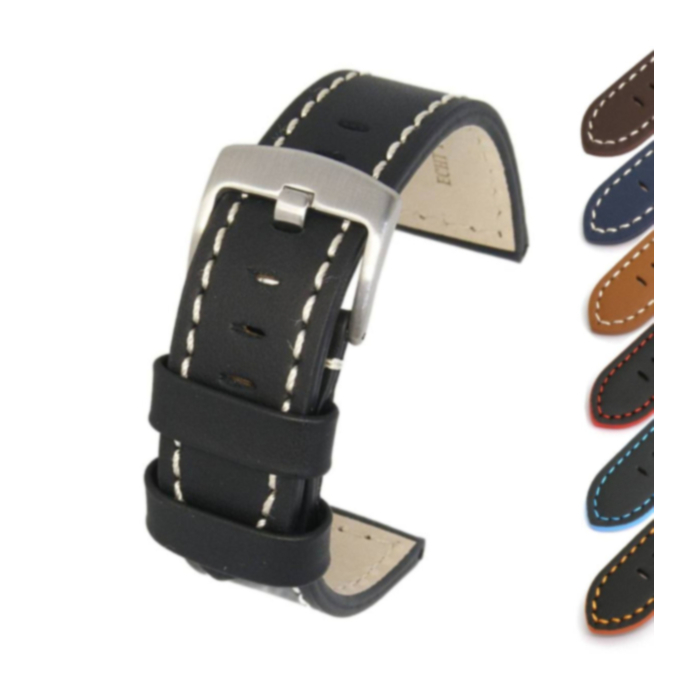 Crafted from premium calf leather, this strap features meticulous stitching—available in contrasting or mathed—to complement any watch style. Also suited to smart watches.